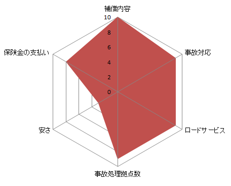 S&P社が行っている自動車保険の格付けではチューリッヒ保険会社、エース損害保険株式会社)と並んで1番いい評価のAA-という評価をもらっています。